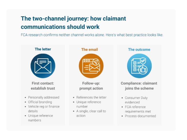 For firms managing thousands of claimant records, many with incomplete or aged data, this creates a real operational challenge. Every outbound communication needs to be personalised, accurate and traceable because the FCA now mandates unique reference numbers in all consumer-facing scheme correspondence.